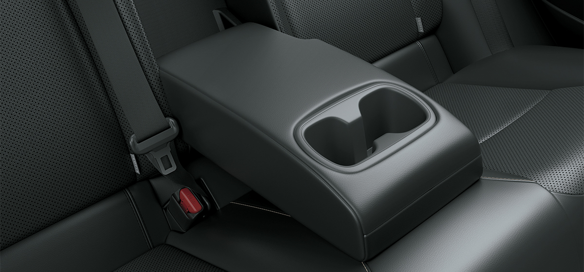 Hàng ghế sau được trang bị tựa tay mang đến sự thoải mái cho hành khách phía sau, đồng thời trên tựa tay còn trang bị khay đựng cốc/chai nước đầy tiện ích.